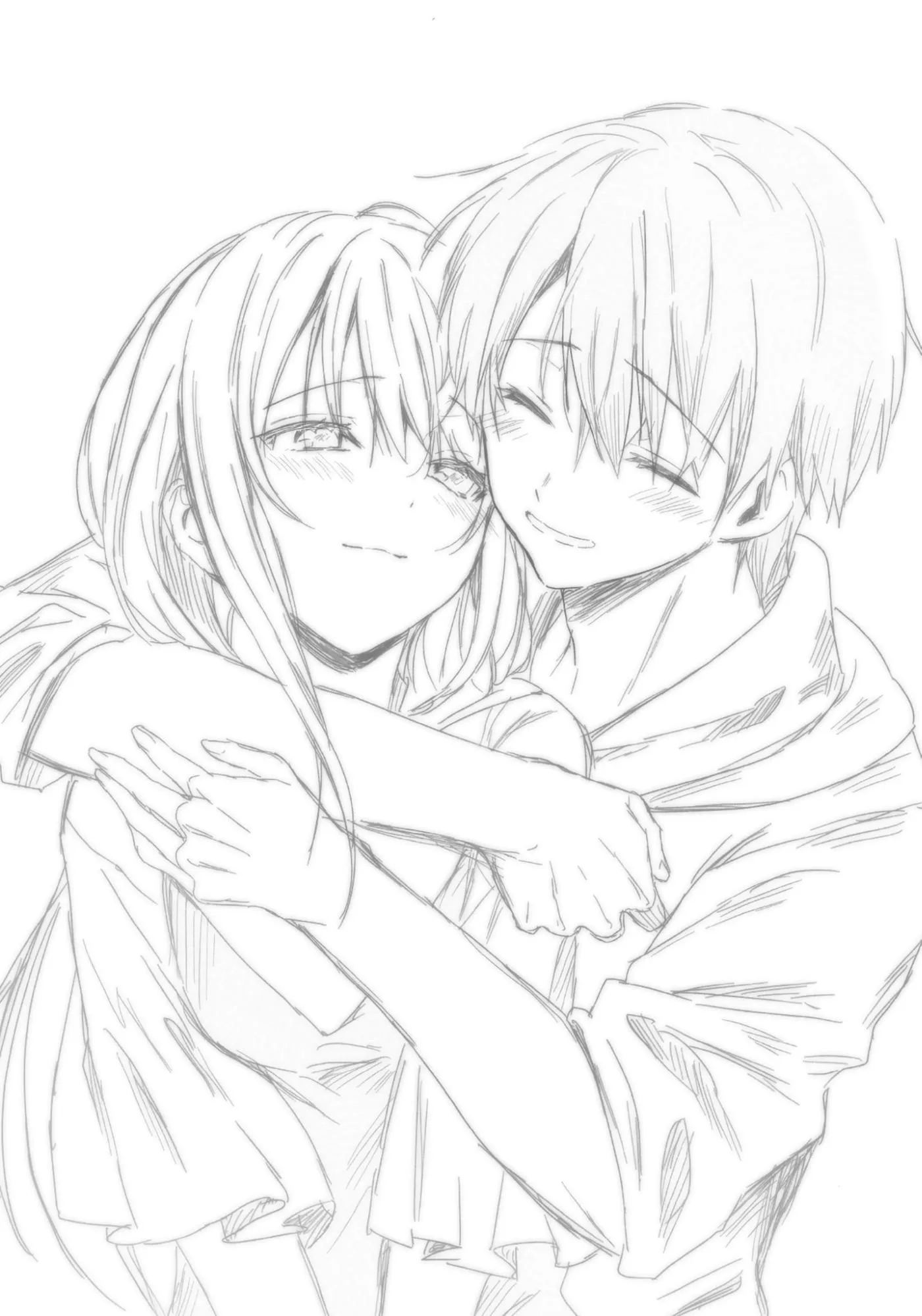 Amane chose not to comment on the quiver in her voice. Instead, he hugged her tightly, slowly stroking her back. Through the gaps in her hair, he caught a glimpse of her eyes looking up at him, soft and seemingly melted with emotion, which made his heart skip a beat.