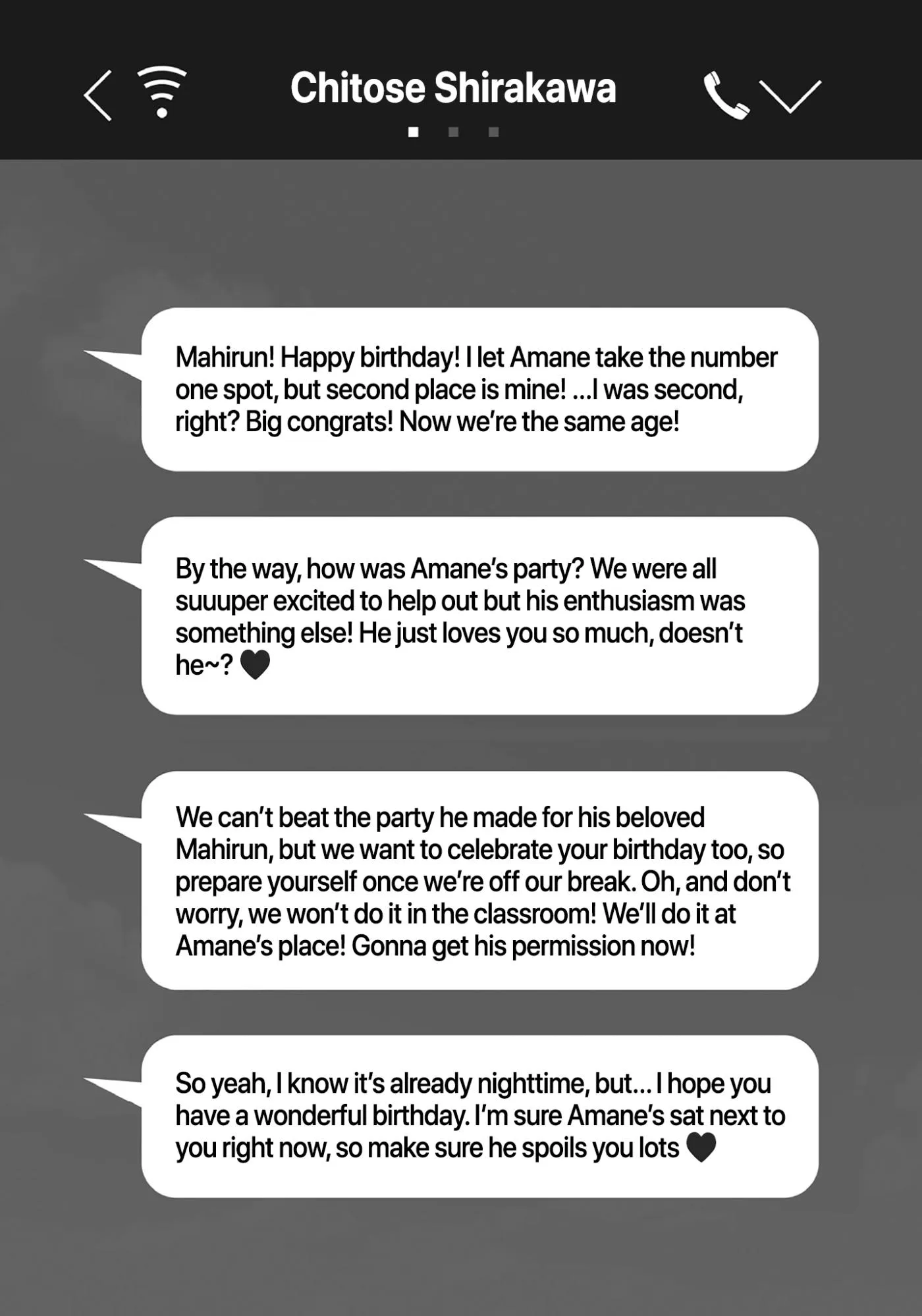 Savoring the simple joy of having friends who were willing to celebrate his birthday, Amane let out a sigh, which seemed to attract the attention of classmates who had apparently been listening in.